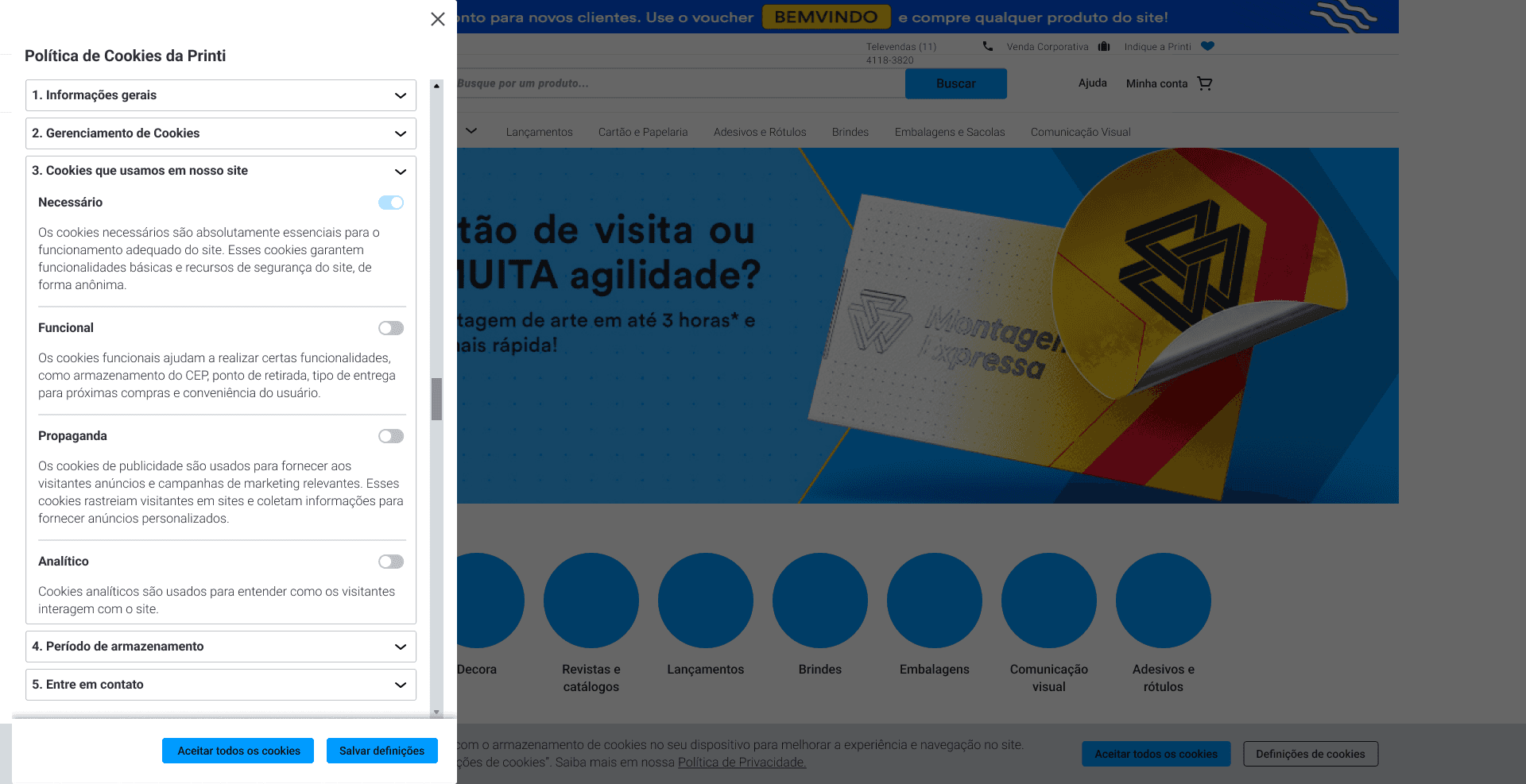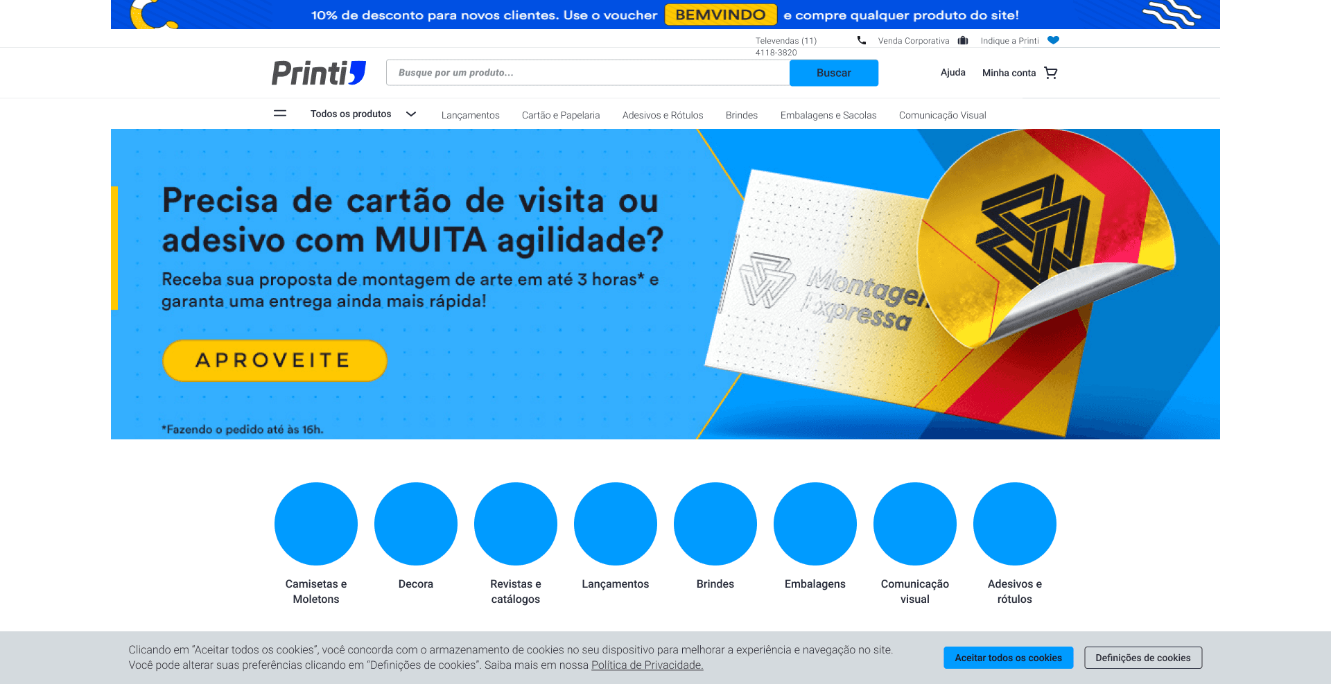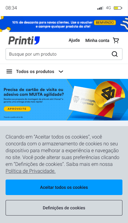 O banner de cookie atual do site da Printi não está em conformidade com as novas regras solicitadas pelo grupo Cimpress;