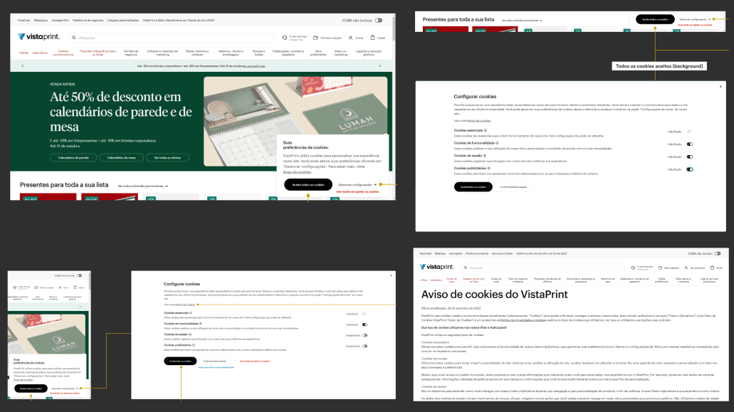 Após seguir todos os passos para atualizar o banner de cookies conforme as novas regras solicitadas pelo grupo Cimpress, obtive os seguintes resultados: