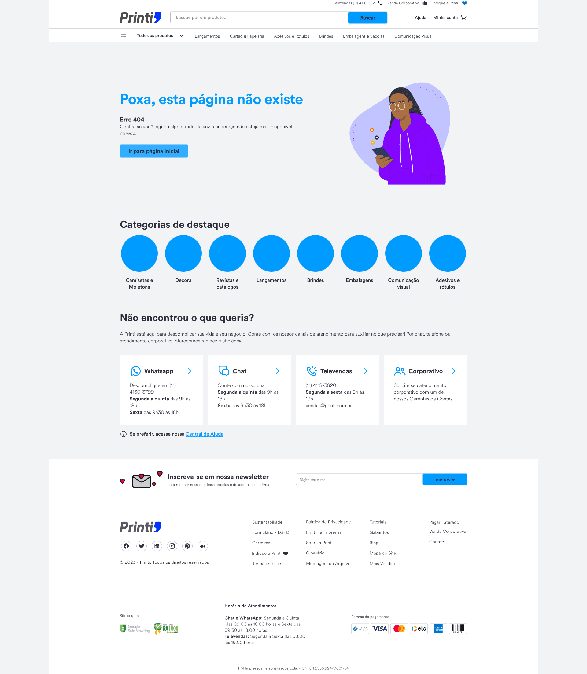 Introduzir uma seção de Categorias Destaques nas páginas de erro para direcionar os usuários a continuar navegando, aumentar leads e conversões.