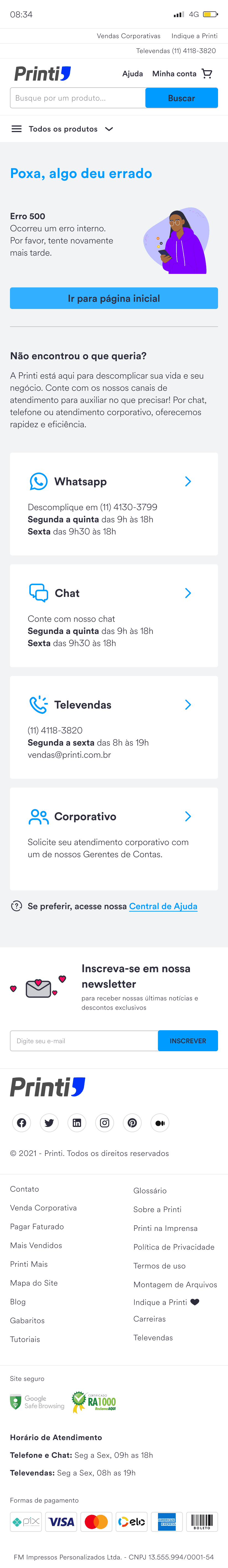 Quando os usuários encontram os erros 404, 500 ou resultado não encontrado, eles não recebem suporte adequado e uma tela de erro genérica é exibida.
