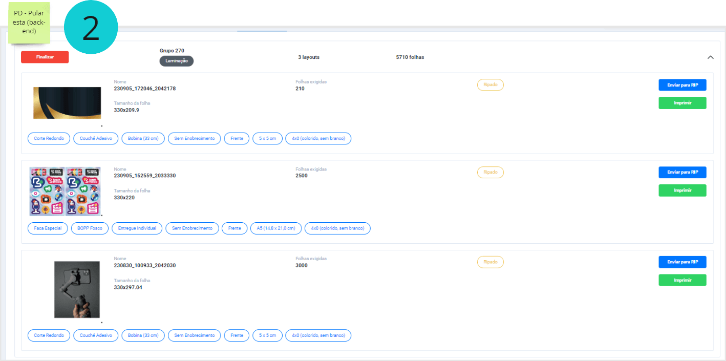 Agilizar o processo de imprimir, ripar e finalizar a impressão dos itens (dentro de um grupo);