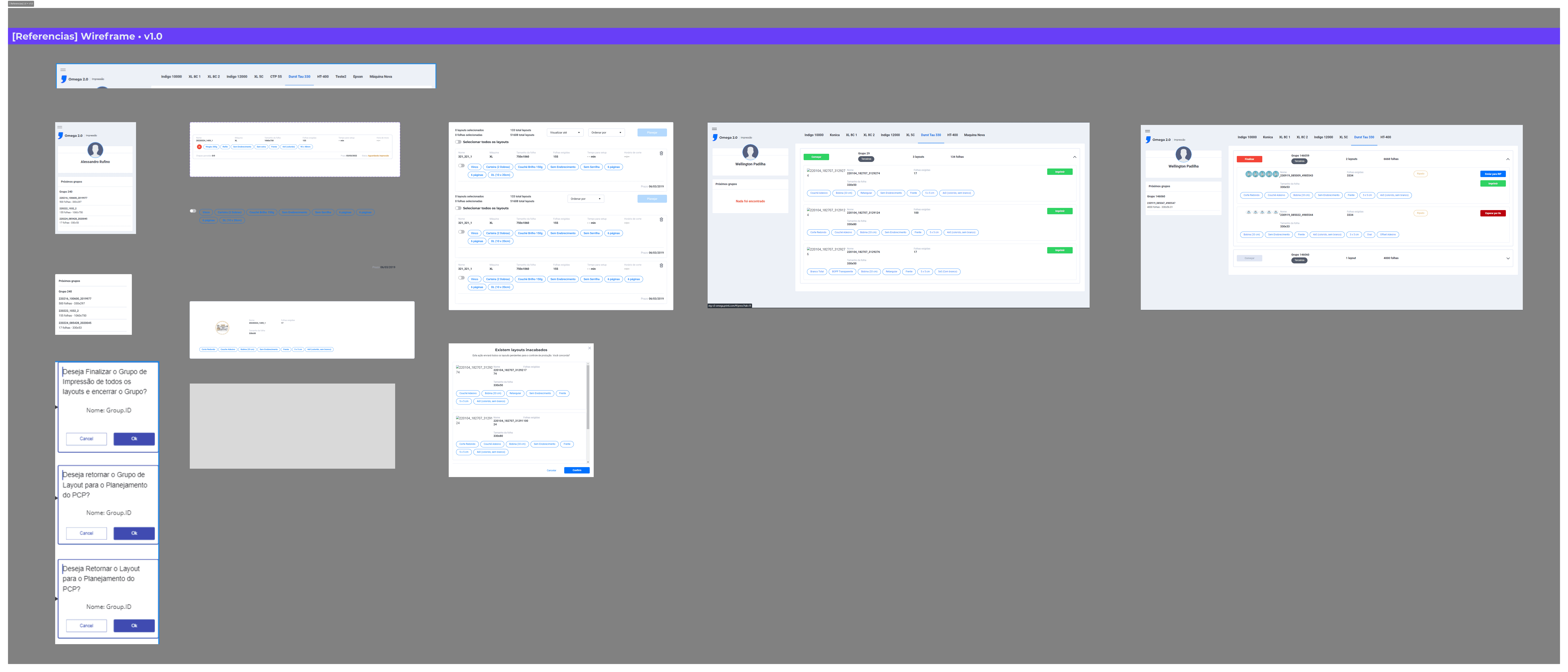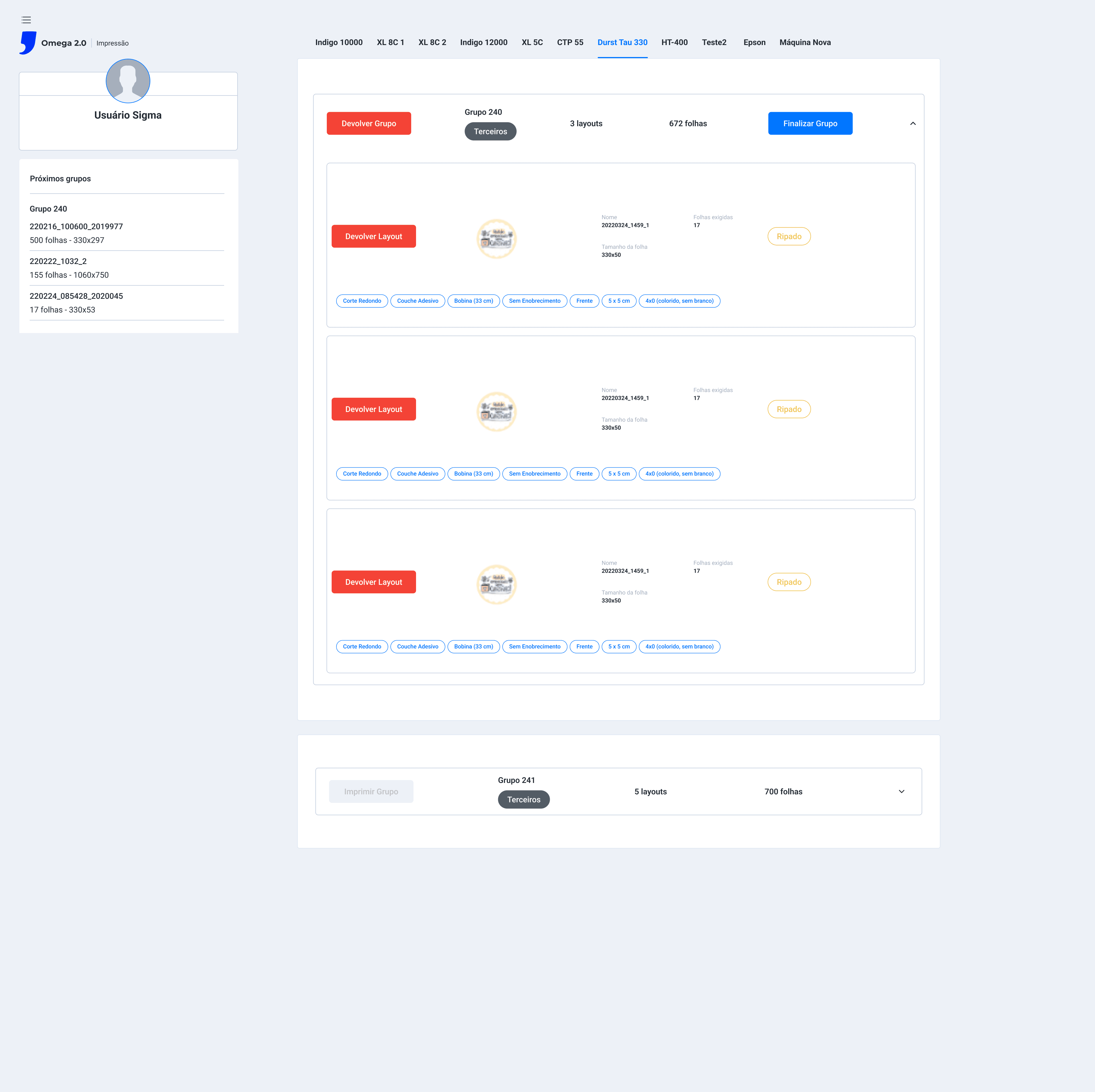 Ao iniciar um grupo todos os layouts devem ripar para a máquina, conter somente um botão para o grupo e não um para cada layout;